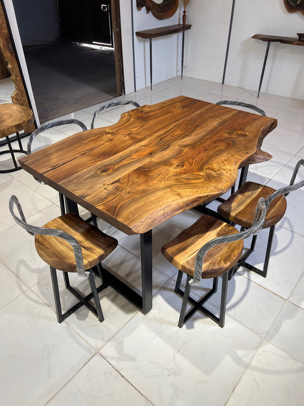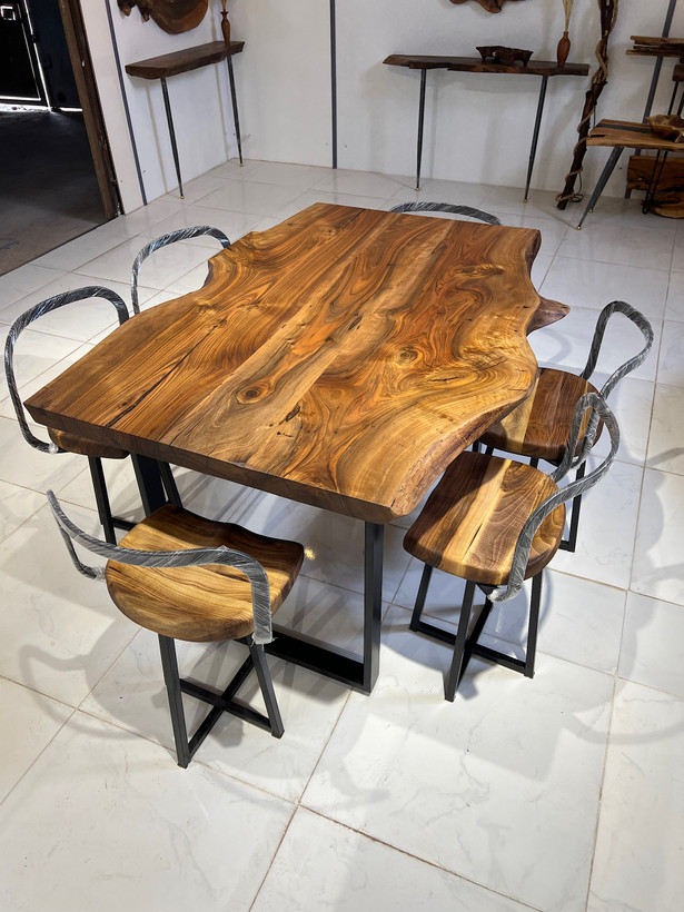 این میز از چوب گردو ساخته شده تمامی ترک و حفرهای این کار با رزین اپوکسی پر و اشباع شده